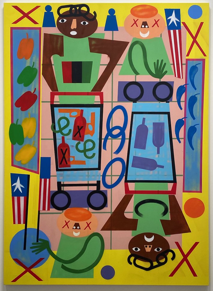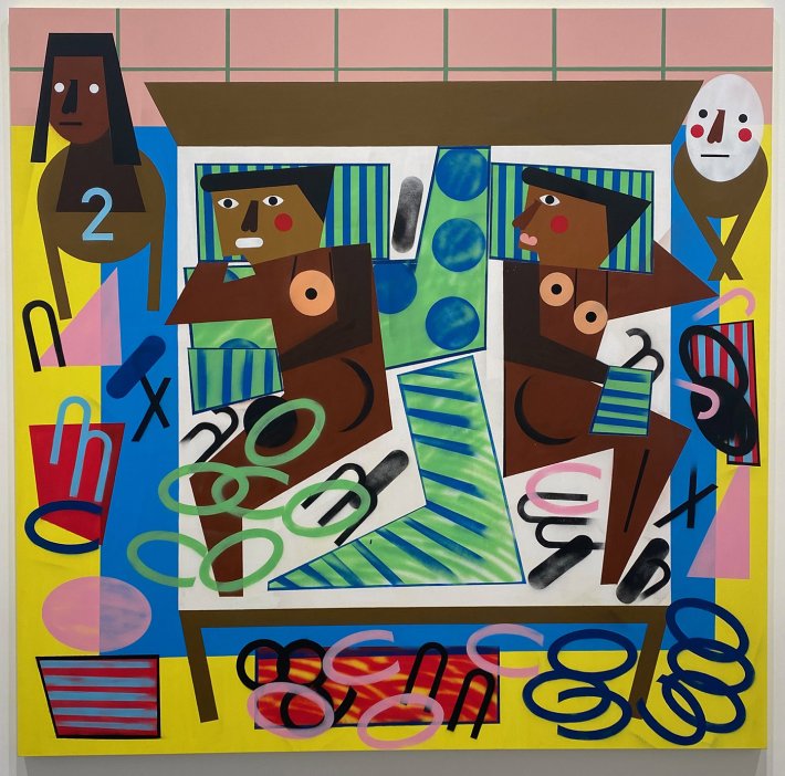 « Now What ? Or What Else ? », Nina Chanel Abney tance le visiteur américain avec ses couleurs éclatantes. Une découverte à la galerie Perrotin.