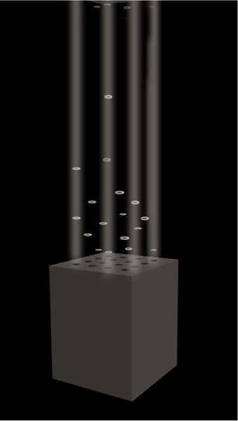 – La visée : transposer dans le temps la présence des visiteurs, en en faisant une véritable banque de sons-phonèmes, qui est rendue visible par la lumière et le souffle. Ce n’était rien d’autre qu’un projet d’alchimiste des temps modernes !