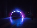 Les « projets associés », c’est-à-dire la plupart des projets des lieux religieux, semblaient généralement plus libérés que les autres, jouant davantage sur le décalage et l’étonnement. Ainsi, les gyrophares colorés de Brigitte Perroto et Augustin Gimel donnaient une dynamique à l’impressionnante et massive église Saint-Pierre de Chaillot, pur style année 30, néo-byzantin, construite en béton. Détournés de leur fonction première très anxiogène, des gyrophares éclataient de lumière et de couleurs en une grande arche joyeuse ; cela visait à réenchanter la ville, et en particulier un quartier bien raide, dans la nuit. Au fur et à mesure que le passant s’en approchait, l’arc-en-ciel s’éclairait de plus en plus jusqu’à l’illumination totale. L’accumulation et la mise en espace des gyrophares dans l’église faisaient oublier la symbolique urbaine alarmante de ces objets. L’œuvre lumineuse donnait beaucoup de légèreté à cette architecture lourde dans un quartier strict. La variation des couleurs pouvait de même évoquer le côté immatériel du vitrail.