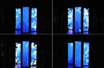 La surface de l’eau vibrait sous le son et ces ondes étaient projetées sur des écrans ou une chaire. Le bâtiment éatient traversé d’ondes d’origines multiples, sonores stridentes ou visuelles. De cette technique imaginative naquit une expression artistique qui renvoyait bien sûr aux sarcophages et à la mort, à la symbolique de l’eau et, dans une église, à celle du baptême. Des pièces immenses autour desquelles le visiteur tournait…Les sens s’entremêlaient, le caractère religieux du bâtiment les orientaient probablement.