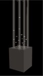 L’œuvre présentée relevait de l’illusion, de la magie de certaines fêtes foraines et n’a cessé de fasciner les visiteurs qui essayaient de décrypter le dispositif présidant à ces effets d’éclipse. La technologie était somme toute simple, mais au service de grands effets : fixé à 17 mètres de hauteur, un gigantesque pendule brillant passait à l’intersection de 5 faisceaux lumineux, devant un fond noir accentuant les contrastes. À cet instant précis, la sphère brillait brusquement de tous ses éclats avant de retrouver immédiatement sa nature, tandis que le fil toujours dans les faisceaux en portait les traces. Mouvement incessant, arrêté périodiquement pour faire passer une lumière rouge plus intense. Mouvement répétitif, trace, éclipse, illusion : tout était pulsation et concentrait l’attention silencieuse des spectateurs. Telle Gorgone, l’œuvre stupéfiait et rendait silencieux le public. C’était bien une église…