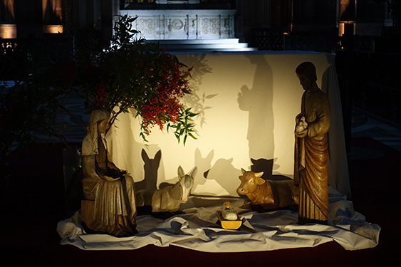 Anouk et Max n’ont pas oublié ce qui les a précédés et ils s’en sont nourris. Revoir les tableaux de la Nativité au Louvre, visiter à plusieurs reprises Saint-Eustache pour s’imprégner de son architecture, relire les textes des évangiles, tout cela a fait partie de leur réflexion. Mais pour ces jeunes artistes ancrés dans leur époque, la crèche n’est pas uniquement une simple image qui se nourrit de la tradition. Ils nous en proposent une nouvelle matérialité et nous montrent ainsi qu’elle est un lieu de vie qui doit rester vivant. Une invitation en somme à rester éveillés, à garder notre lampe allumée et à en partager la lumière dans la joie.